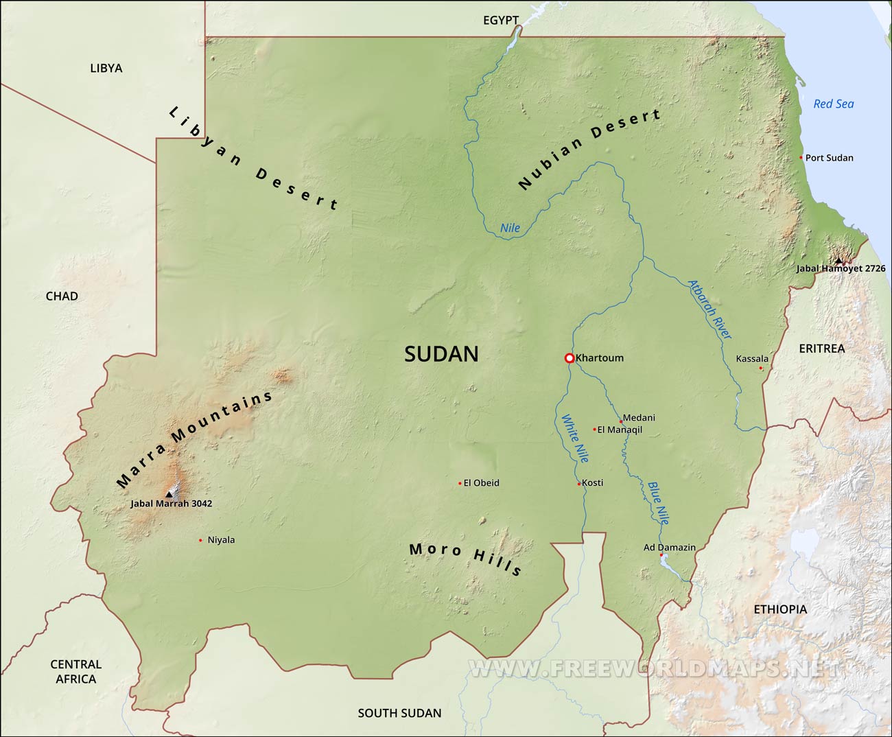 Sudan Physical Map
