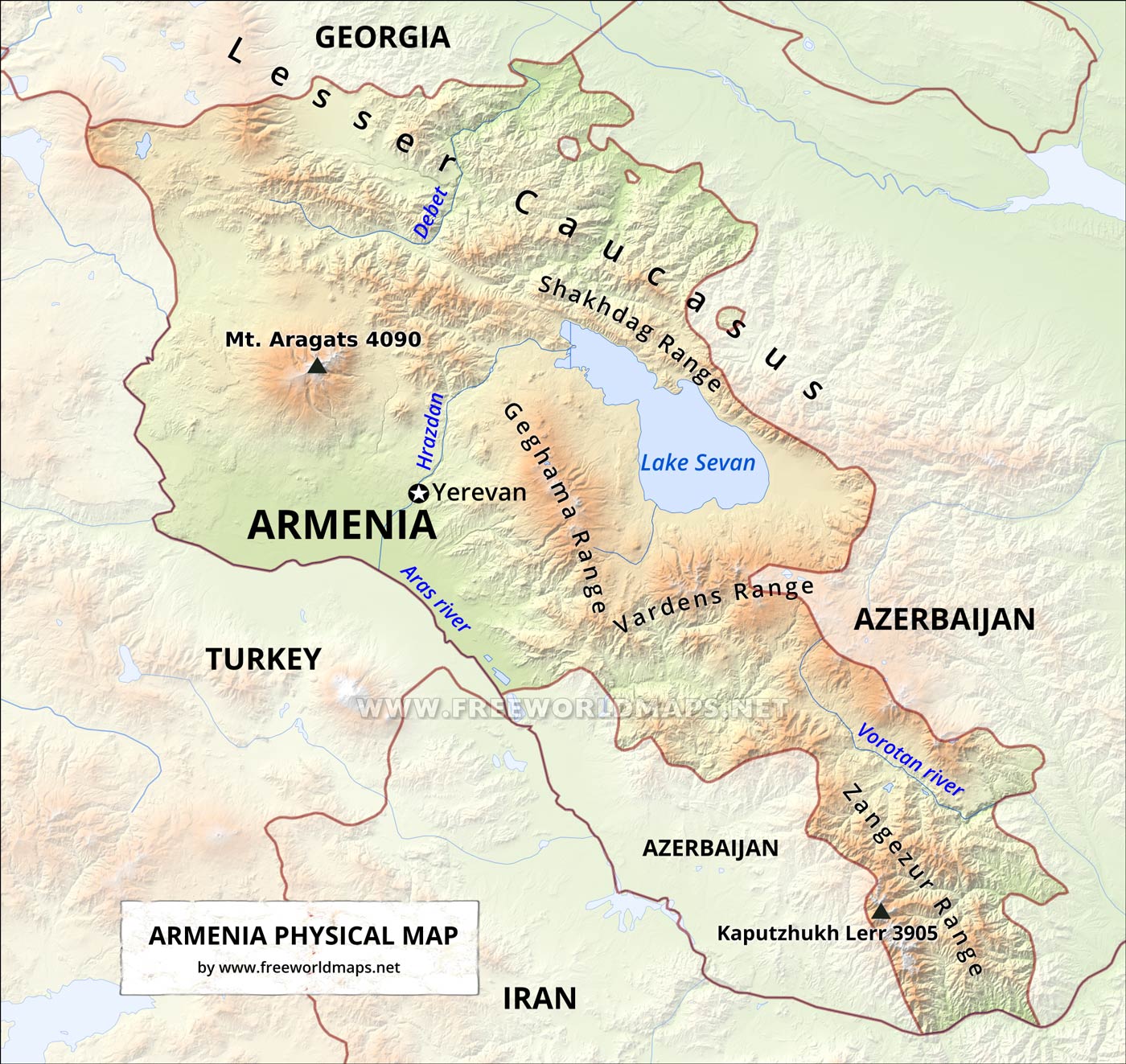 - southwestern region next to the Turkish border is mostly flat due the alluvial plains of the Aras river