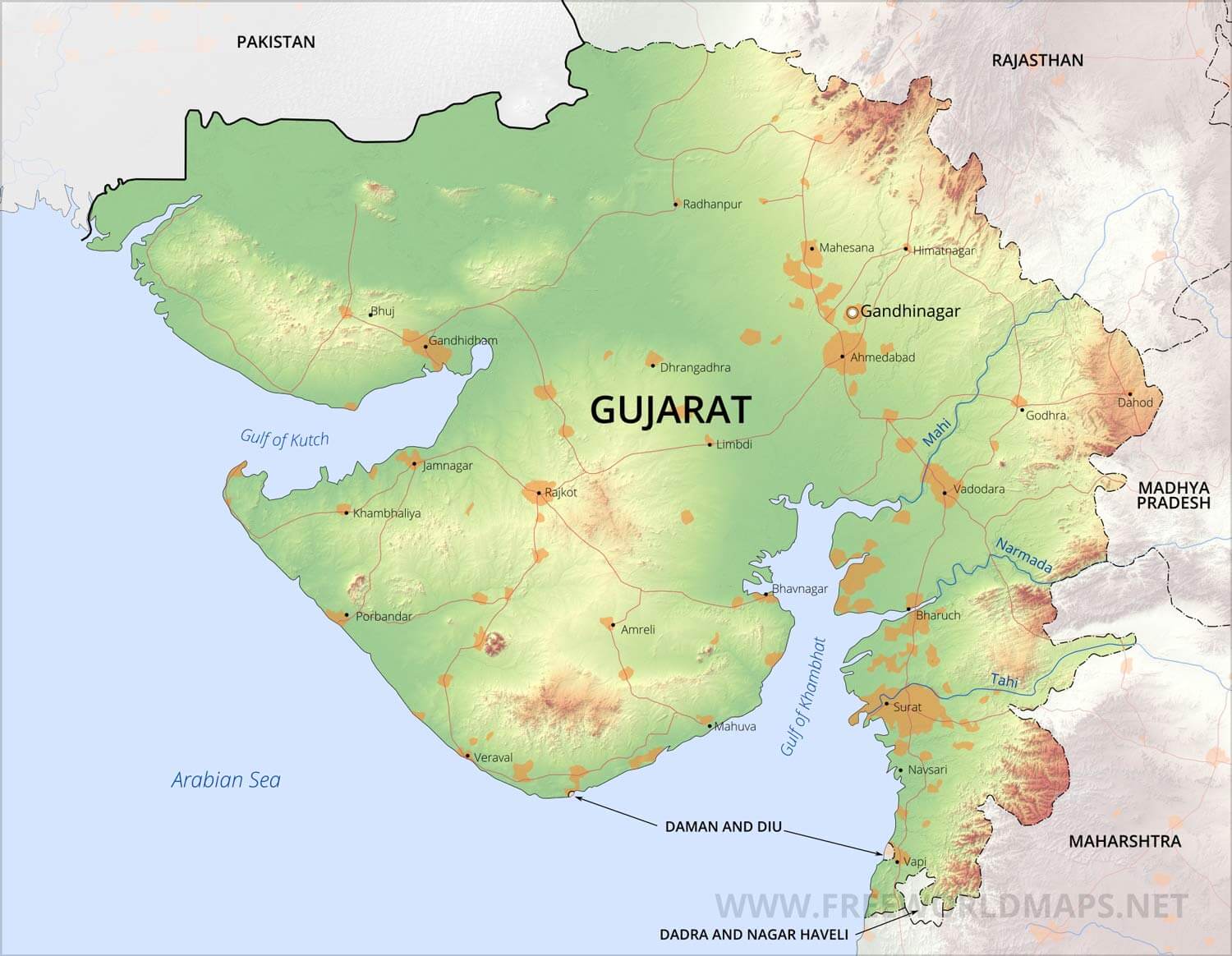 Physical map of Gujarat