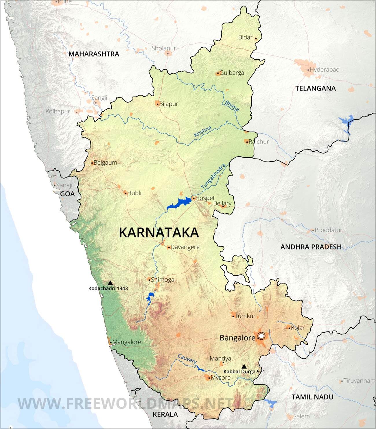 Physical map of Karnataka