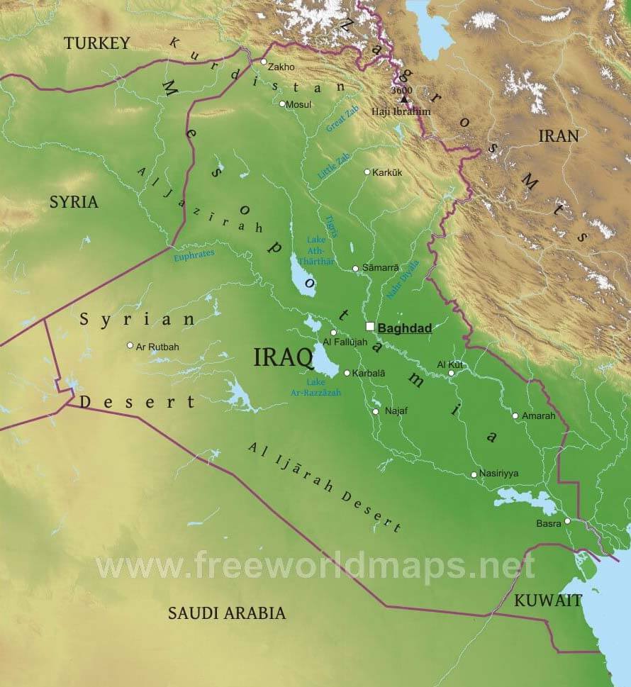 Could not find what you're looking for? Need a special Iraq map? We can create the map for you!Crop a region, add/remove features, change shape, different projections, adjust colors, even add your locations!