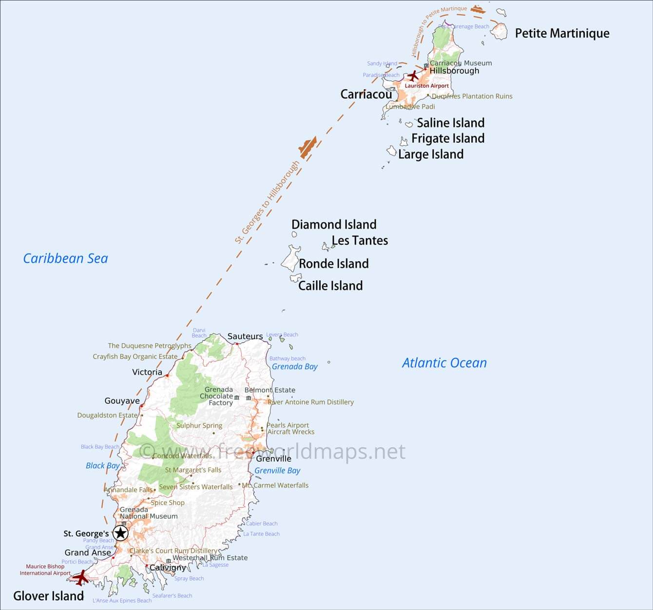 Gouyave, Grenville, Hillsborough, Sauteurs, Victoria, Dovers, St. George'sIslands: