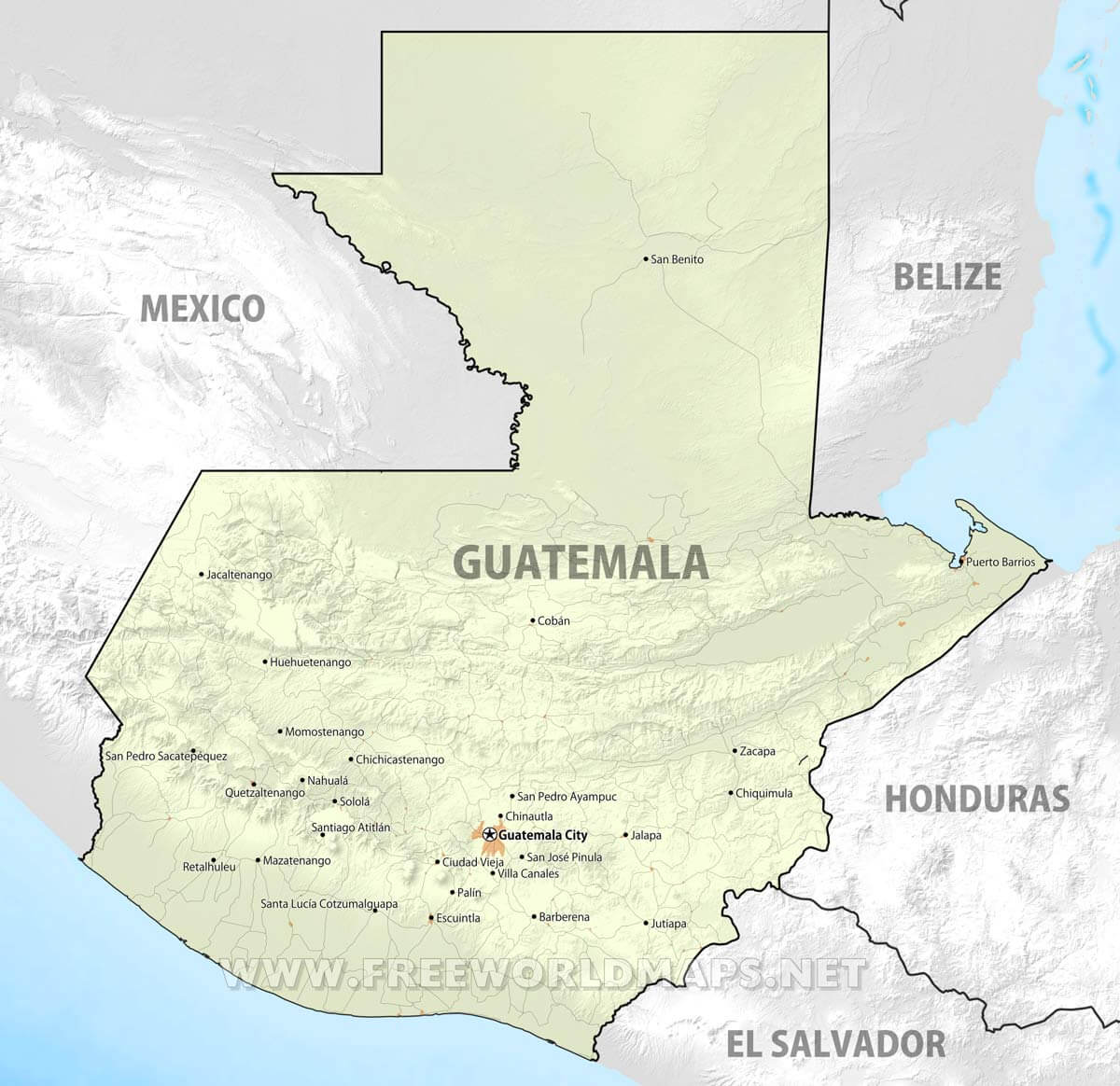 Could not find what you're looking for? Need a special Guatemala map? We can create the map for you!Crop a region, add/remove features, change shape, different projections, adjust colors, even add your locations!