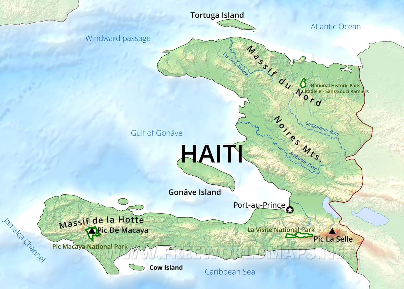 Port-au-Prince is the capital. Other towns and cities include Cap-Haitien, Les Cayes and Gonaives.