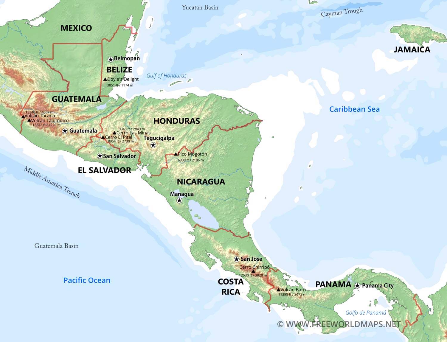 Central America has many mountain ranges: the longest are the Cordillera Isabelia and the Cordillera de Talamanca.