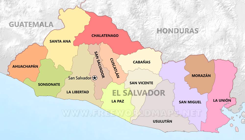 Political map of Salvador, equirectangular projection