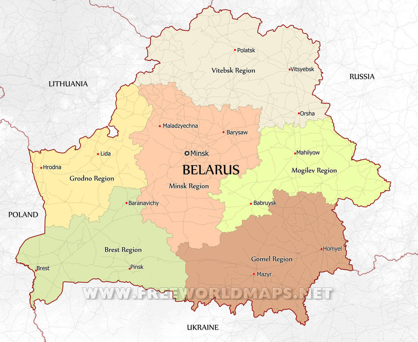 Could not find what you're looking for? Need a special Belarus map? We can create the map for you!Crop a region, add/remove features, change shape, different projections, adjust colors, even add your locations!