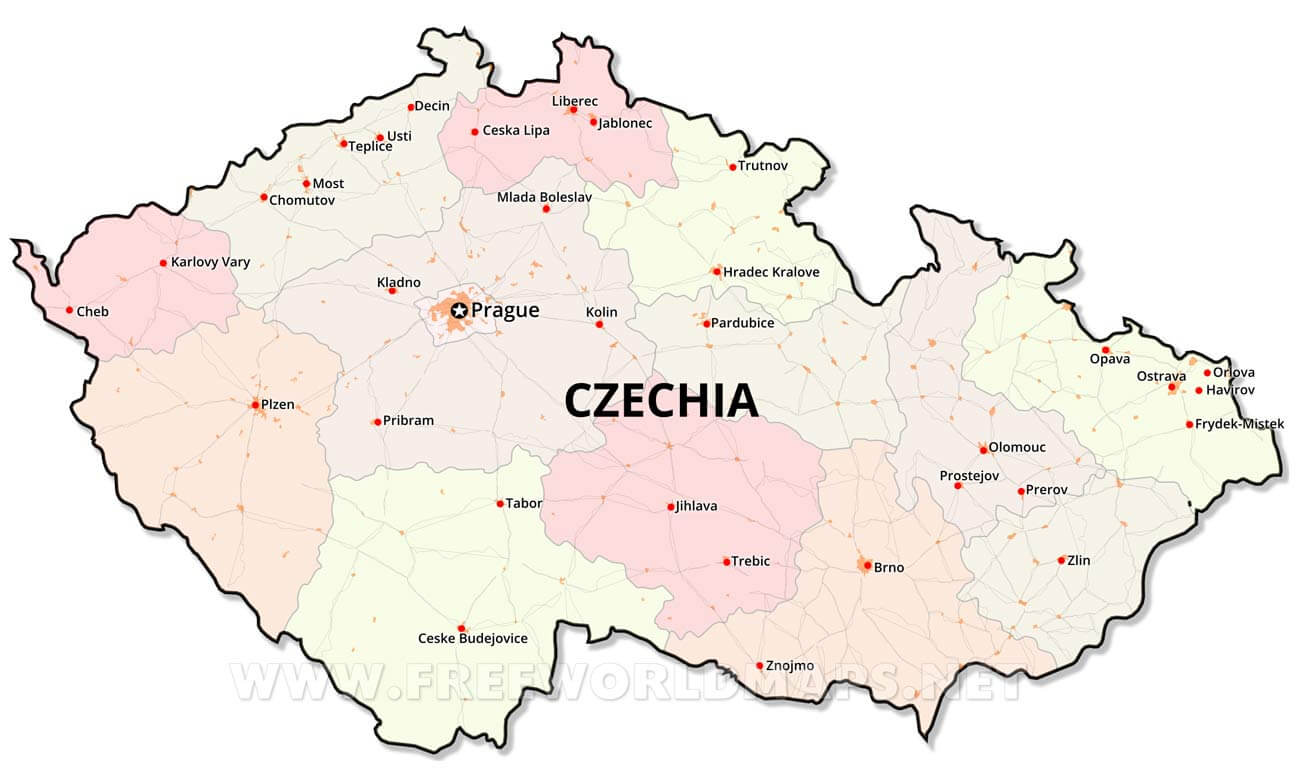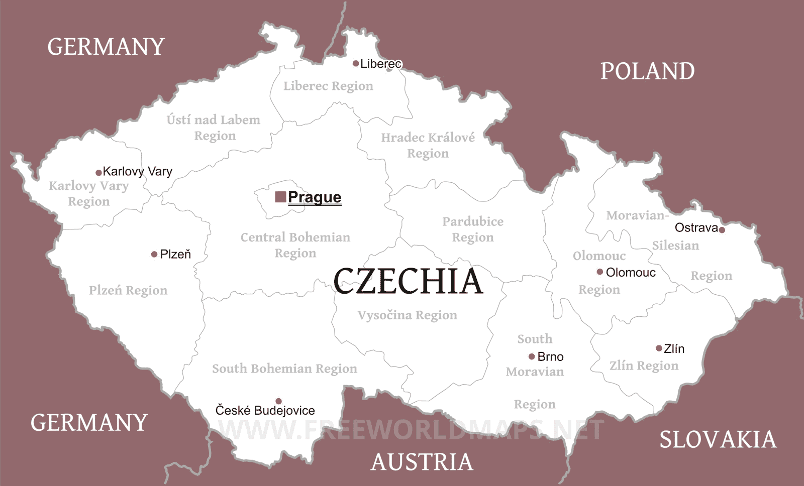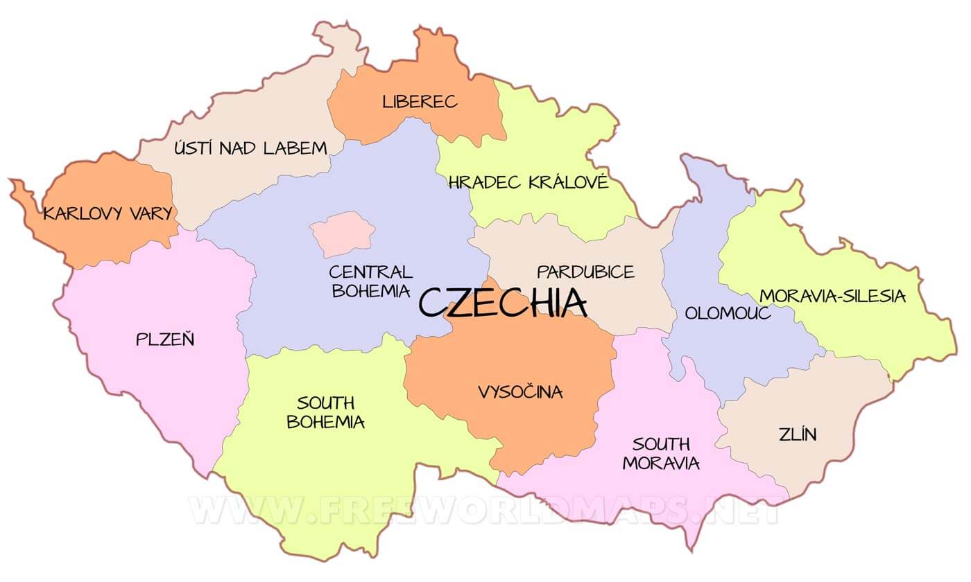 The Czech Republic (also called as Czechia) is divided into 13 administrative regions:
