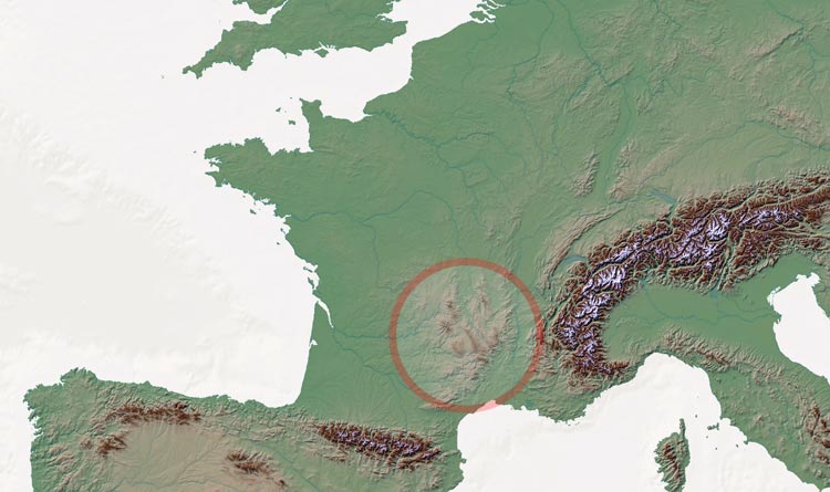 List of the geographical names of the Massif Central as shown on the map