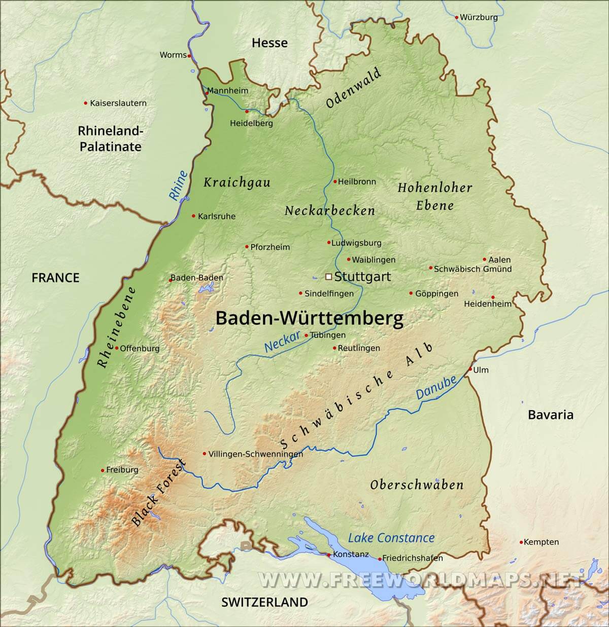 Could not find what you're looking for? Need a customized Baden Württemberg map? We can create the map for you!Crop a region, add/remove features, change shape, different projections, adjust colors, even add your locations!