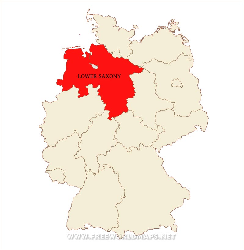 Could not find what you're looking for? Need a customized Lower Saxony map? We can create the map for you!Crop a region, add/remove features, change shape, different projections, adjust colors, even add your locations!