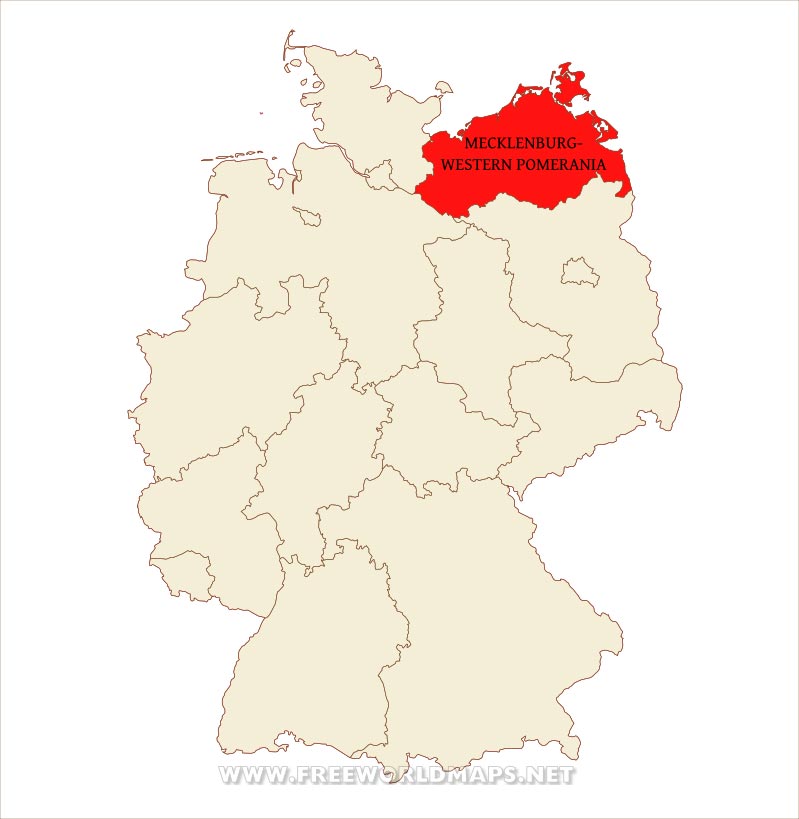 Largest cities: Rostock, Bergen, Stralsund, Wismar, Neubrandenburg, Neusterlitz, Greifswald