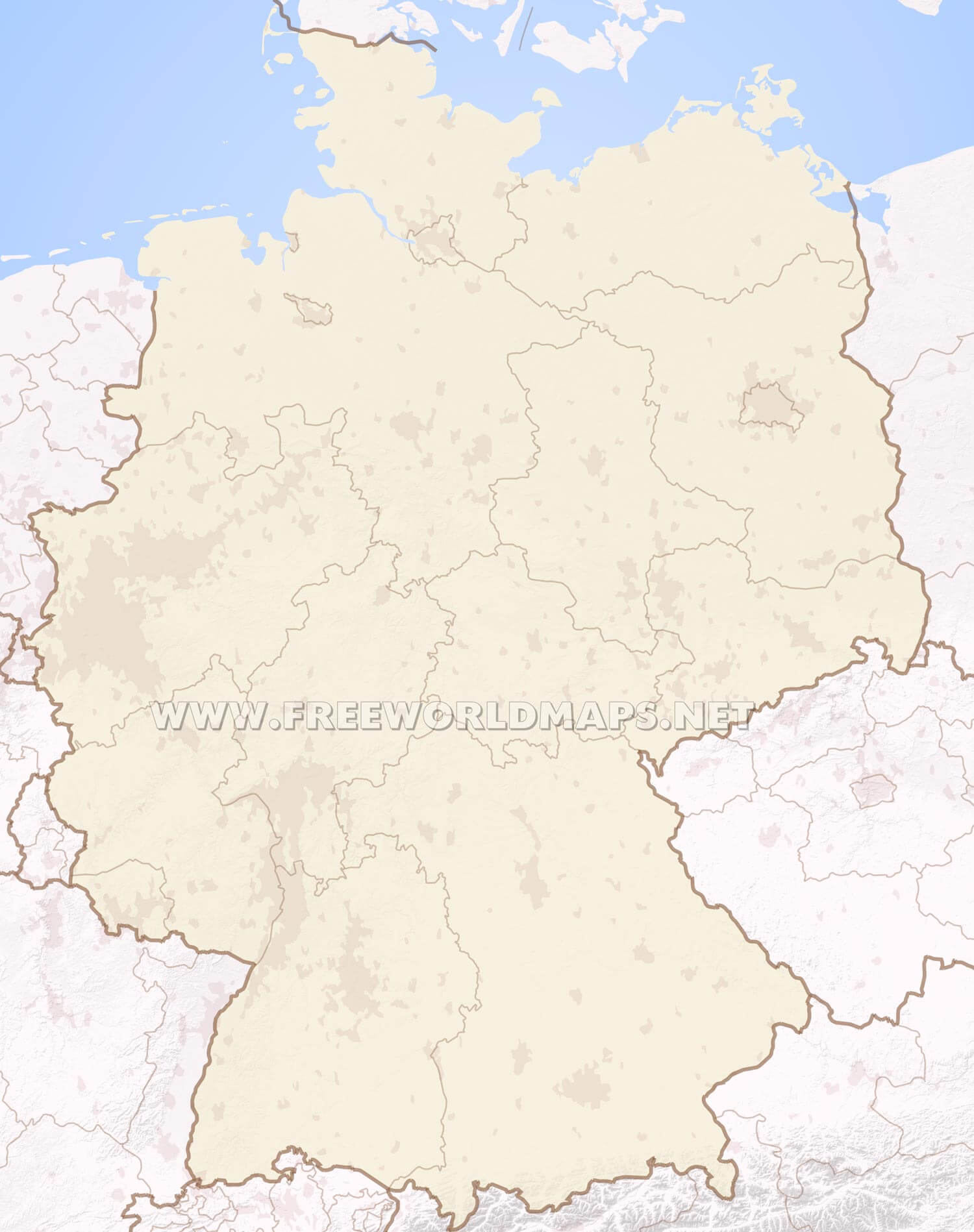Could not find what you're looking for? Need a special Germany map? We can create the map for you!Crop a region, add/remove features, change shape, different projections, adjust colors, even add your locations!