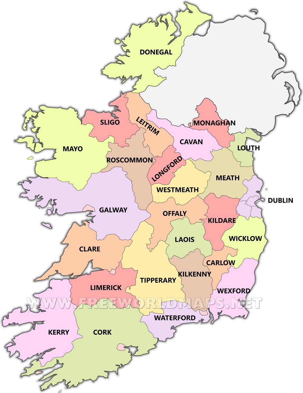 The Republic of Ireland is traditionally divided into 26 counties. The 26 counties are: