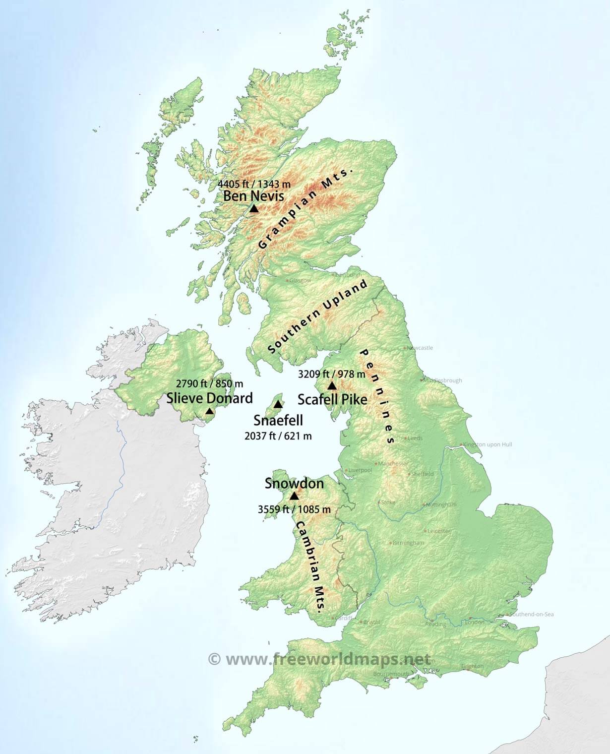 The landscape is very varied. Scotland and Wales are mountainous with Ben Nevis (Scotland) and Snowdon (Wales) respectively the highest and second highest peaks in the UK. Although thousands of years of human activity have removed most of the original forests, Kielder Forest in Northumberland, the New Forest in Hampshire and others in Wales and Scotland are a substantial size.