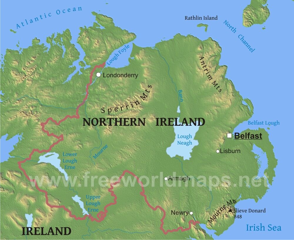 Physical map of Northern Ireland