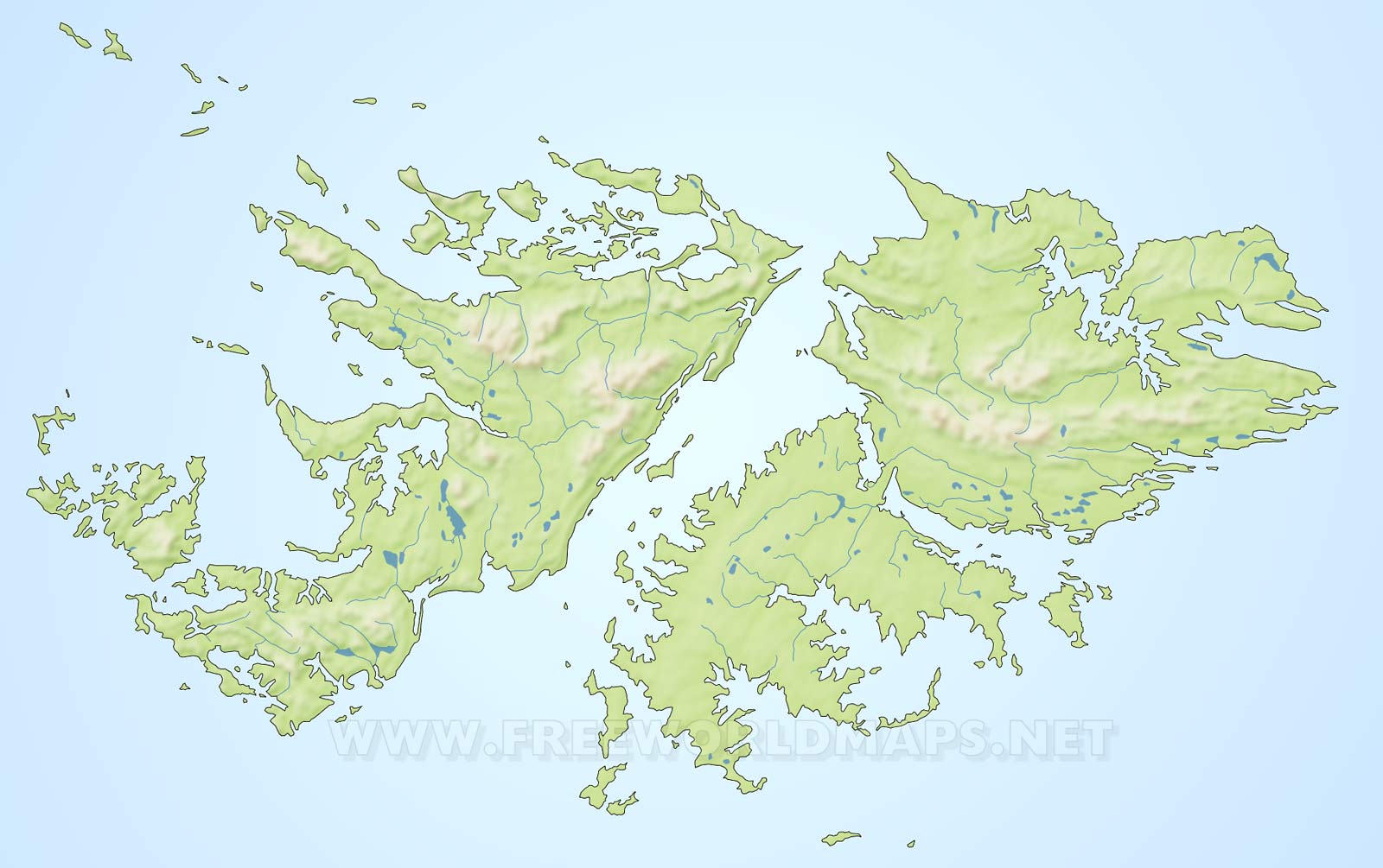 It consist of two larger (East Falkland and West Falkland) islands, and several hundreds of smaller ones.