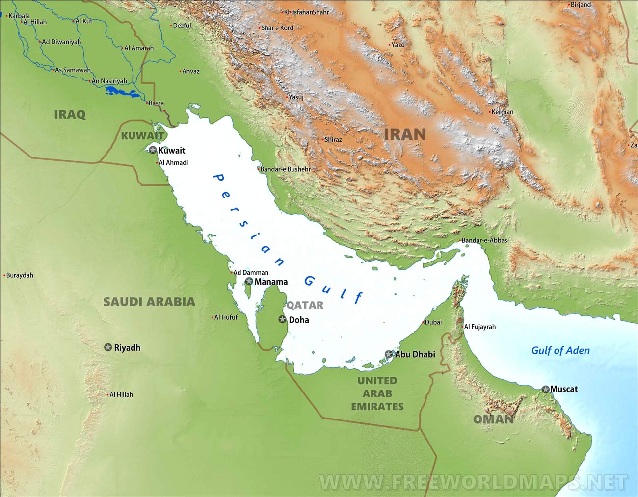 Could not find what you're looking for? Need a special Persian Gulf map? We can create the map for you!Crop a region, add/remove features, change shape, different projections, adjust colors, even add your locations!