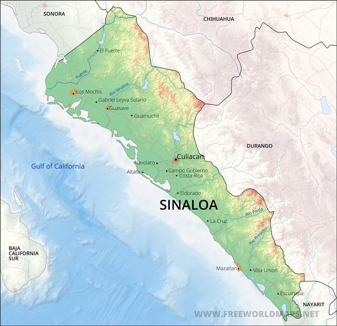 Physical map of Sinaloa