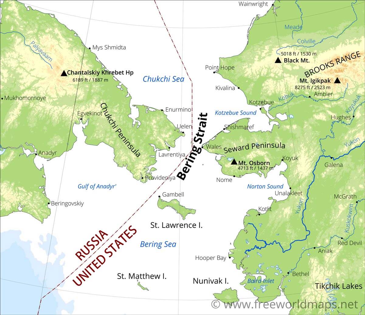 Could not find what you're looking for? Need a customized Bering Strait map? We can create the map for you!Crop a region, add/remove features, change shape, different projections, adjust colors, even add your locations!