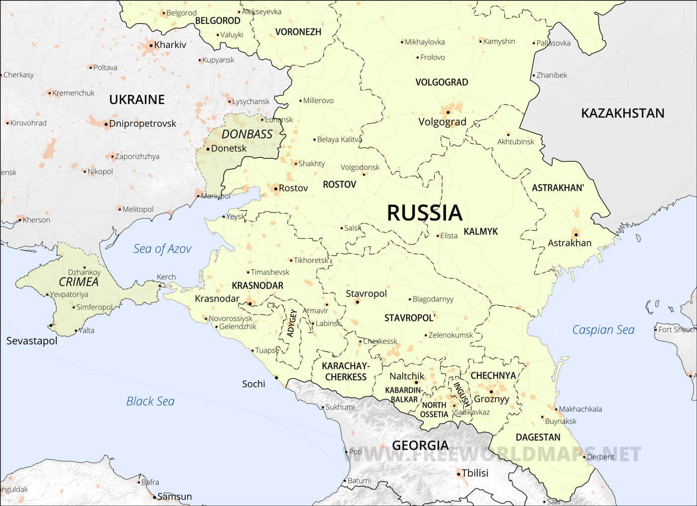 Could not find what you're looking for? Need a special Southern Russia map? We can create the map for you!Crop a region, add/remove features, change shape, different projections, adjust colors, even add your locations!