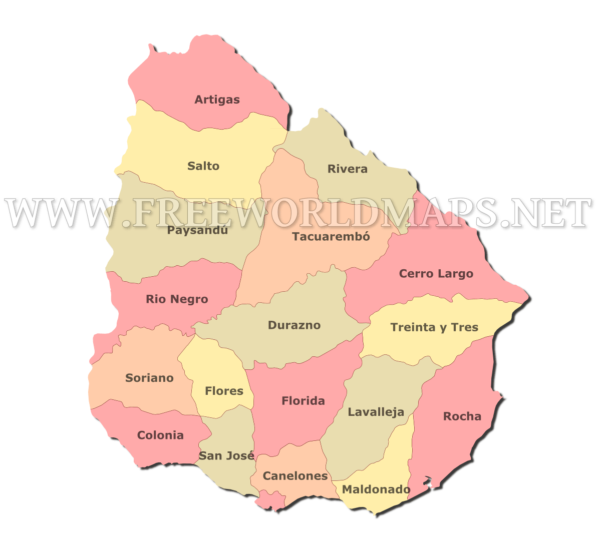 Artigas, Canelones, Cerro Largo, Colonia, Durazno, Flores, Florida, Lavalleja, Maldonado, Montevideo, Paysandú, Río Negro, Rivera, Rocha, Salto, San José, Soriano, Tacuarembó, Treinta y Tres