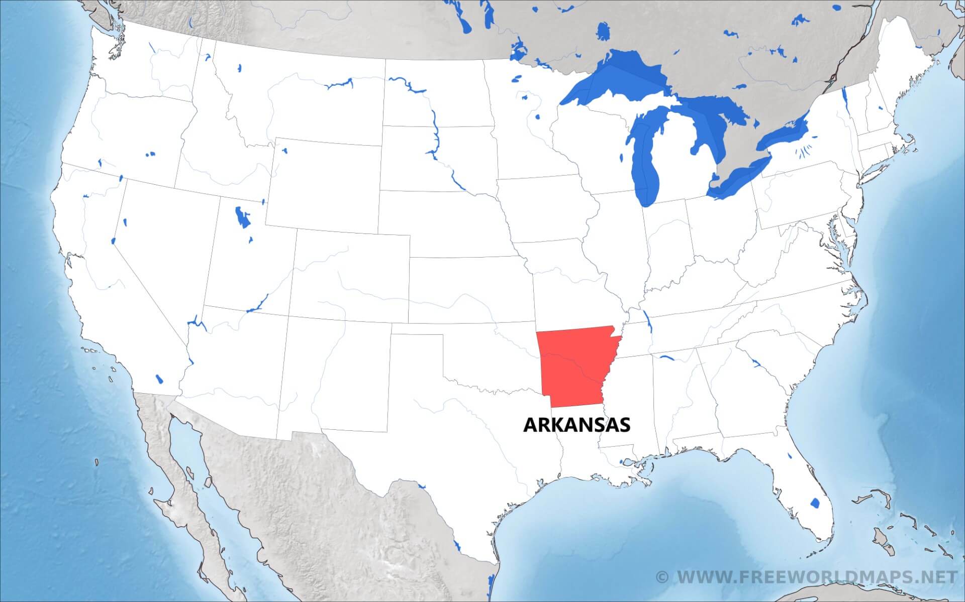 Where is Arkansas located on the map?
