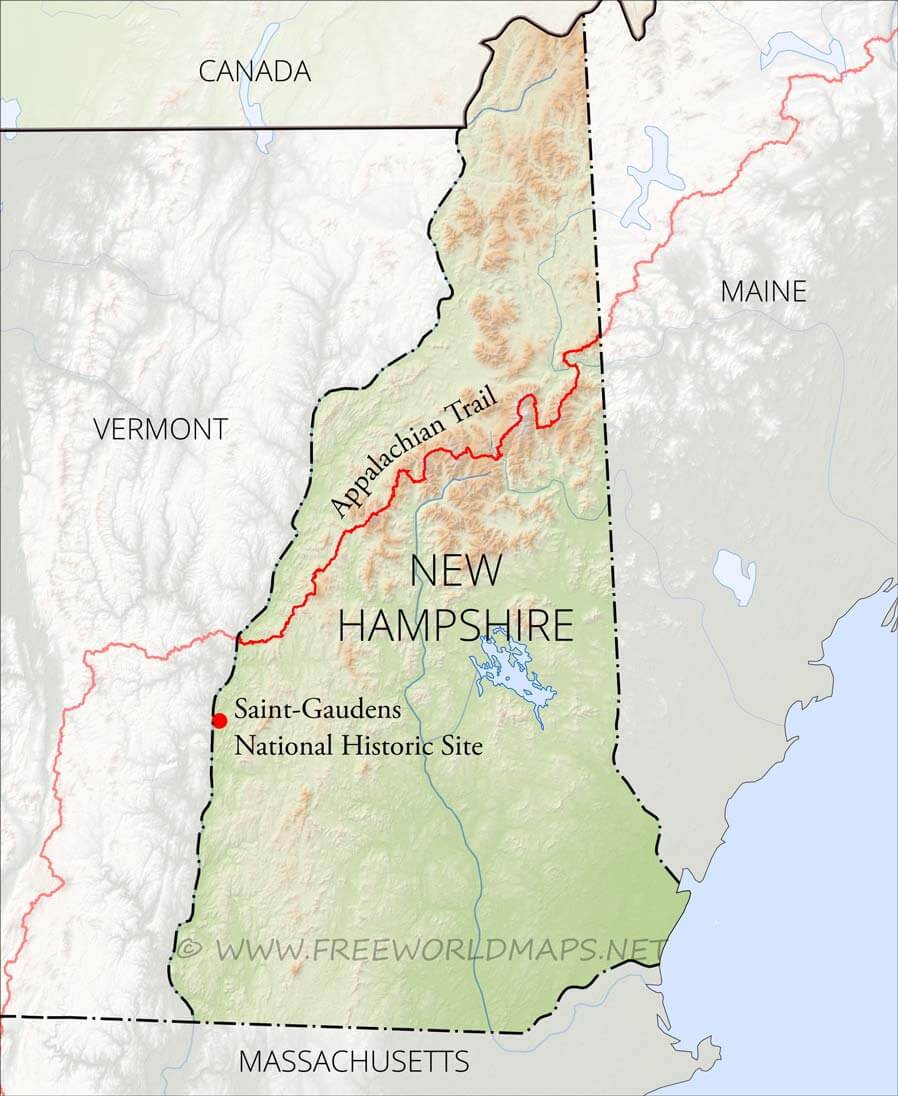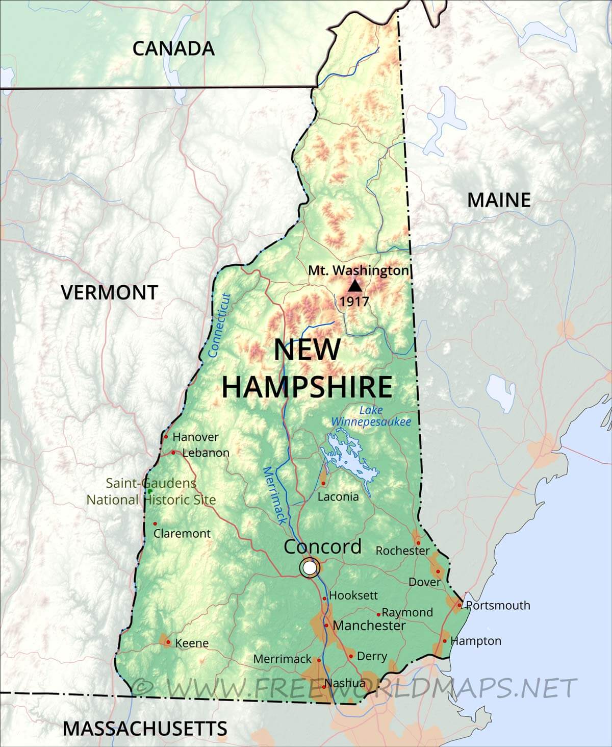 Blank HD relief map of New Hampshire, topography of New Hampshire