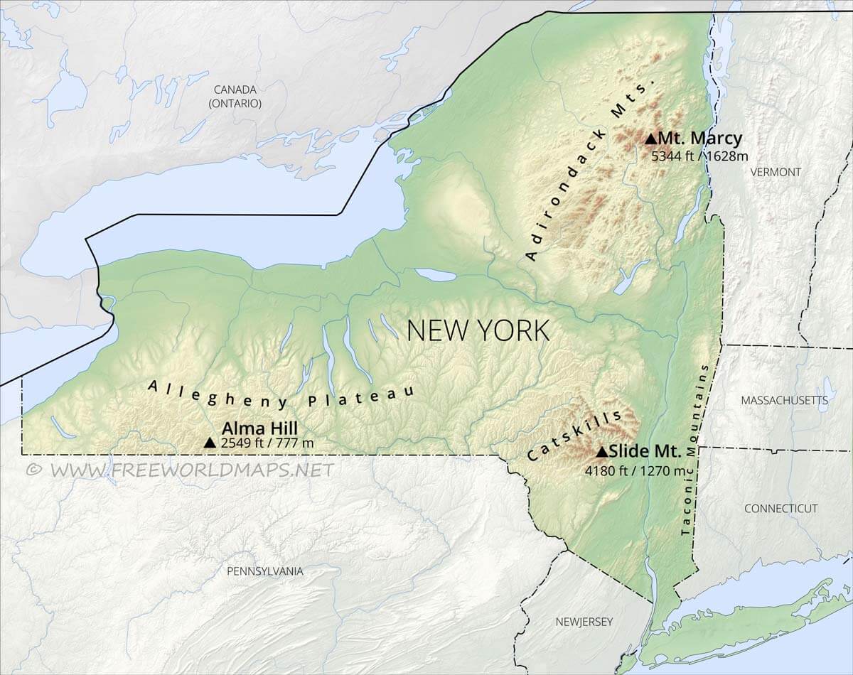 Geographic Features: Allegheny Plateau, Catskill Mountains, Adirondack Mountains, Long Island